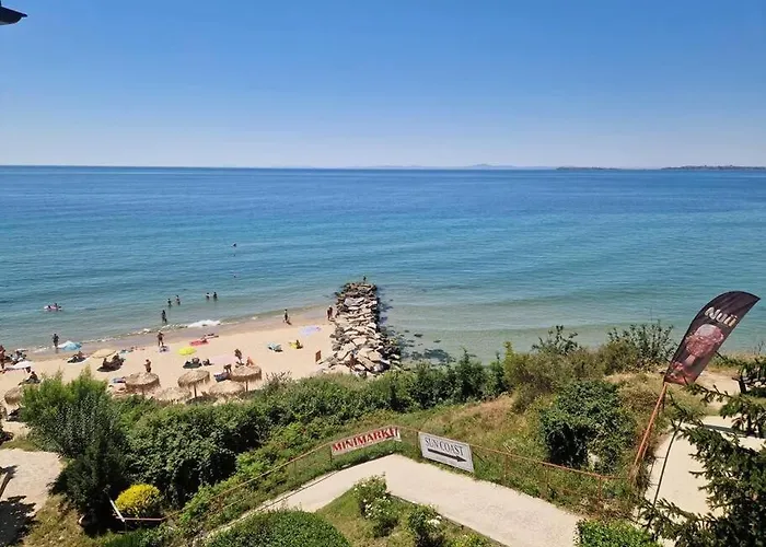 Stunning Beach View Apartment van 64 m^2 is gelegen op maar 5 minuten lopen van de beach Sveti Vlas East en op ongeveer 7 km van Postkantoor. Het strand appartement met een terras is op korte loopafstand van Venid Beach gelegen.